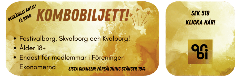 Om du är medlem i Föreningen Ekonomerna ska du köpa antingen Medlemsbiljetten eller Kombobiljetten.